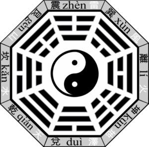 In diesem Fall sind die Abbildungen der Trigramme aus dem Yijing (Buch der Wandlungen) gemeint, die aus je drei entweder gebrochenen oder ungebrochenen Linien zusammengesetzt sind. In ihrer Kombination erhält man acht verschiedene Trigramm-Möglichkeiten, Ba Gua genannt. Es handelt sich hierbei ursprünglich um acht Orakelzeichen, die als Symbole zur Weissagung dienten.